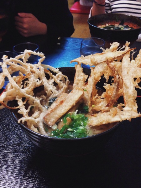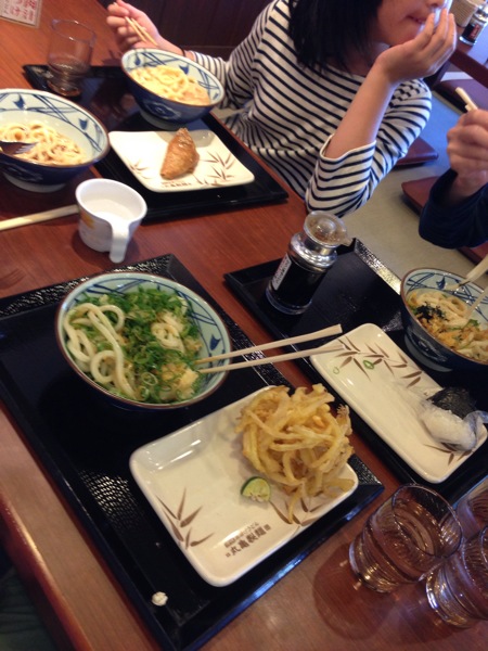 yunを送って福岡に戻ってきて、4人でうどん。