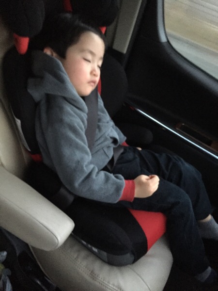 後部座席でゲームしてたrinはびっくり、寝てたcoはとりあえず起きてきた。