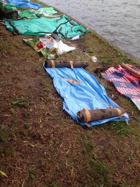 帰りにダイソーでブルーシートとガムテープを買って大濠公園へ。