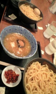 六厘舎 @ラーメンスタジアム2 10/11 (土) [ 2008 ] 12:49 グルメ@福岡 No Comments ランチに10/06から期間限定で キャナルシティのラーメンスタジアム2に出店してる つけ麺屋「六厘舎」に行く。 お昼時で連休だからか結構な人。 東池袋大勝軒も同時に出てて、そっちの方が並んでる人多い。 ちょっと並んで食券買って店内へ。 ・つけめん ・辛あつ(あつもりにトッピングで特製香辛料が別皿でついてくる) をオーダー かつおぶしの風味がすごい。 なかなか九州では食べたことのない味。 美味しかった。 大勝軒も食べればよかったかなぁ。。