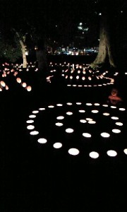 熊本くらし人祭り みずあかり @熊本 10/11 (土) [ 2008 ] 19:40 お出かけ No Comments 鳥栖から久留米まで走って久留米インターから高速へ。 益城空港インターで降りて街中へ。 「熊本くらし人祭り みずあかり」という祭りがあってるということで 花畑公園~坪井川までずーと切った竹にキャンドルとかが灯されてるみたい。 2日間で5万4千個ほどのろうそくの灯かりが灯されるらしい。 車で前を通ってみると結構な人。 鶴屋パーキングに停めて行ってみる。 結構綺麗。でもこれに火を灯すのは大変だろうなぁ。 でも途中で喧嘩してさっさと引き上げる。。