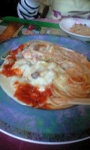 レストラン リヨン @延岡 10/19 (日) [ 2008 ] 12:56 グルメ@宮崎 No Comments natの参観日が終わって、移動。 yunが定食系が食べたいっていうから調べて、洋食屋「レストランリヨン」へ。 20年以上の老舗レストランみたい。 ・日替わりランチ(チキンソテー和風ソース) ・味噌ポークカツ ・シーフードグラタンパスタ をオーダー。 メインディッシュにサラダ、スープ、デザートにコーヒーと出てくるミニコース。 結構お腹いっぱい。 お店自体は古い感じだけど、素朴で美味しかった。