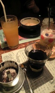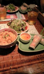 PHO BAC @春日 11/08 (土) [ 2008 ] 21:38 グルメ@福岡 No Comments ライブの帰りに夕食にネットで調べてでてきた ベトナム料理屋「PHO BAC(フォーバック)」に行ってみた。 夜のcafeコース?だったかな?をオーダー。 ・サラダ ・生春巻き ・チャーハン ・フォー(好きなものをチョイス) ・デザート(好きなものをチョイス) ・ドリンク(好きなものをチョイス) 生春巻き、チャーハンとどれもおいしい。 フォーってなかなか食べる機会ないけど、美味しかった。 ベトナムコーヒーをオーダー。練乳の上にコーヒーを落とす。 混ぜると甘い・・。 でも意外においしかった。 デザートにドリンクまで付いて、満足行くコースだった。